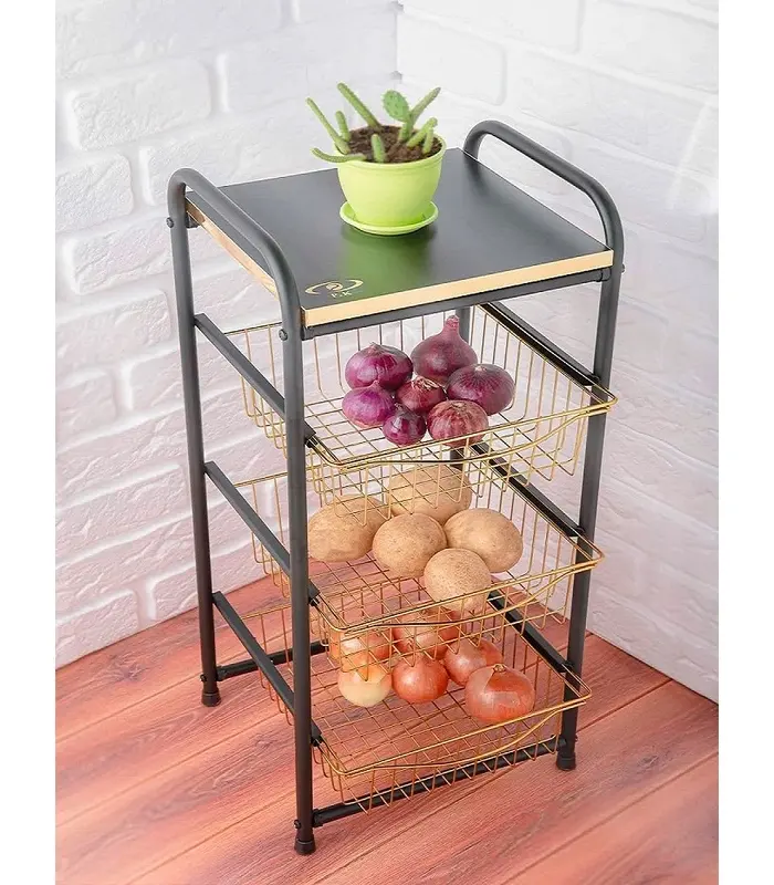 سبد سیبزمینی و پیاز سه طبقه کشویی پیشتاز کاوه یک محصول باکیفیت و کاملاً ایرانی است که با رنگ کورهای بادوام پوشش داده شده و مقاومت بالایی در برابر ضربه و خطوخش دارد. طراحی این محصول به صورت کشویی است و هر یک از سبدهای استیل آن قابلیت جابهجایی آسان دارند. هر سبد توان تحمل وزنی تا حدود ۵ کیلوگرم را داراست و علاوه بر نگهداری سیبزمینی و پیاز، میتوانید از آن برای مرتبسازی وسایل مختلف در آشپزخانه، اتاق یا حتی کنار مبلمان نیز استفاده کنید.این سبد علاوه بر کارایی بالا، ظاهری شیک و منظم به محیط شما میدهد و دوام مناسبی برای استفاده طولانیمدت دارد.