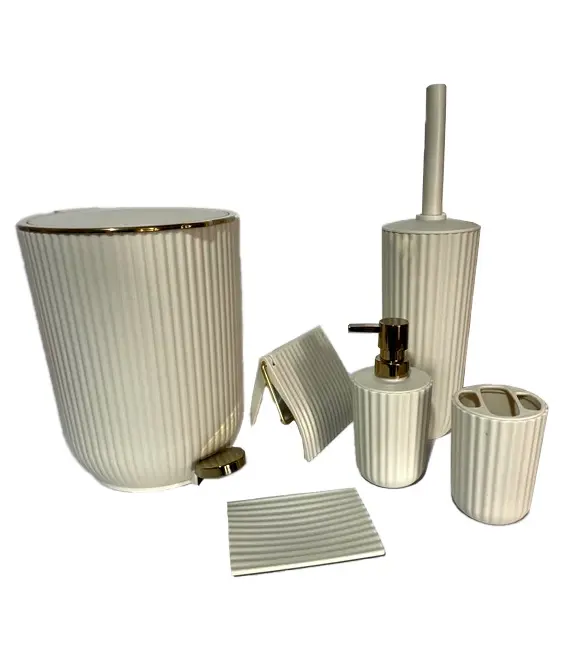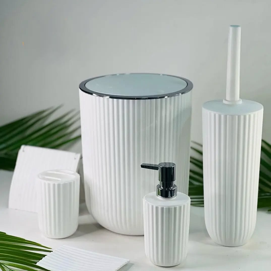 این مجموعه از پلاستیک فشرده و باکیفیت ساخته شده است که علاوه بر مقاومت بالا در برابر رطوبت، بهراحتی تمیز میشود و دوام طولانیمدتی دارد. طراحی بادبزنی و خطوط برجسته روی بدنه، ظاهری لوکس و مینیمال به سرویس بهداشتی میبخشد. رنگ روشن و هماهنگ این ست باعث میشود بهراحتی با انواع دکوراسیونها ست شود.