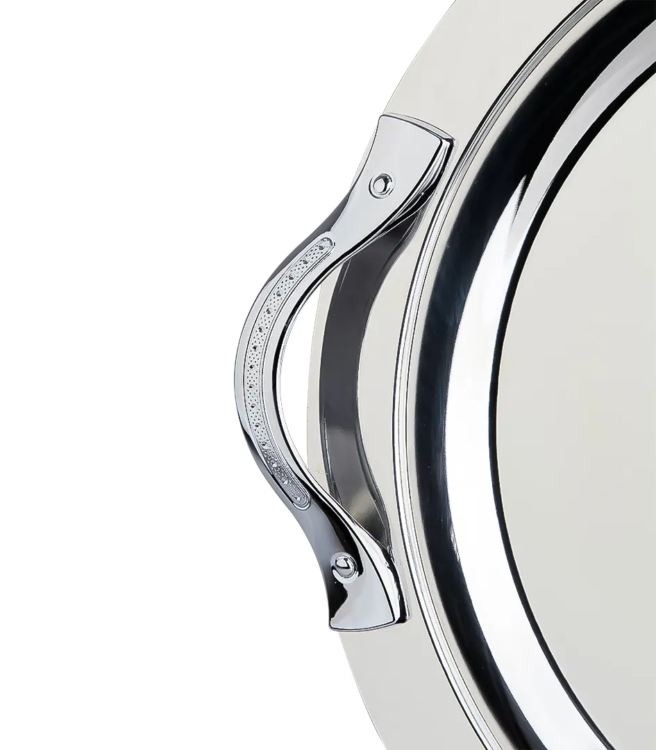 دستههای محکم و ارگونومیک در دو طرف سینی، حمل و جابهجایی را ساده و ایمن میکنند. این محصول در کنار ظاهر براق و طراحی چشمنواز خود، مقاومت بالایی در برابر خط و خش و تغییر رنگ دارد و بهراحتی تمیز میشود.