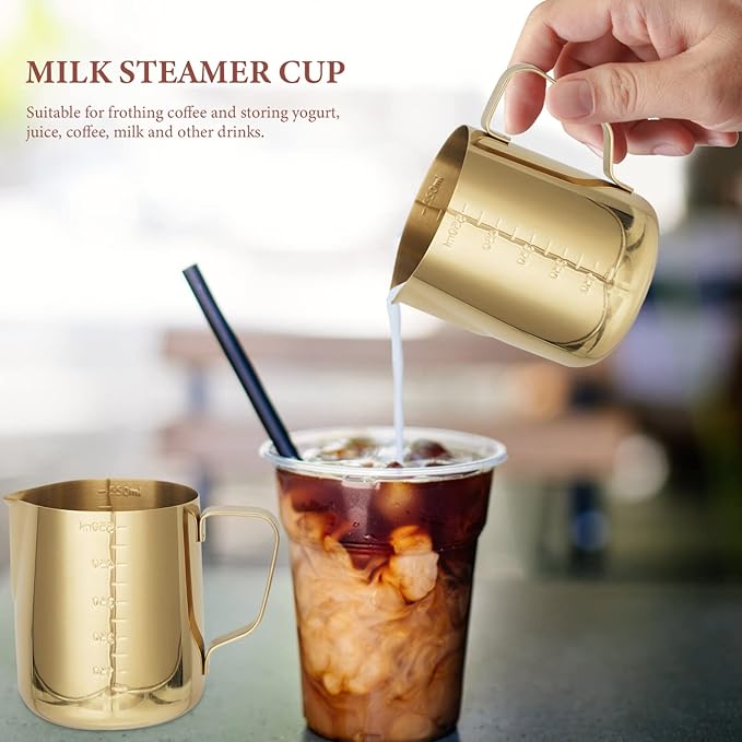 کف گردِ استیل ضدزنگ، شستوشوی آسان. میتوانید از آن برای کفدادن شیر، اندازهگیری سایر مایعات یا سرو خامه و نوشیدنیهای دیگر برای مهمانان استفاده کنید.