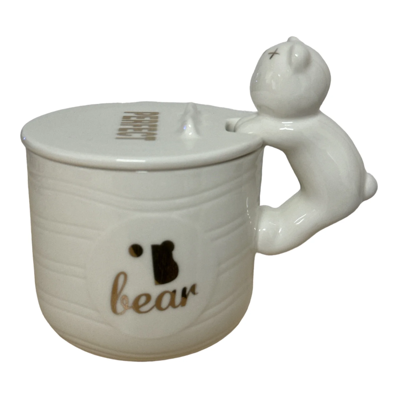 این ست شامل یک ماگ با دسته‌ای به شکل خرس و درپوشی بامزه است که درون جعبه‌ای سفید بسته‌بندی شده است.