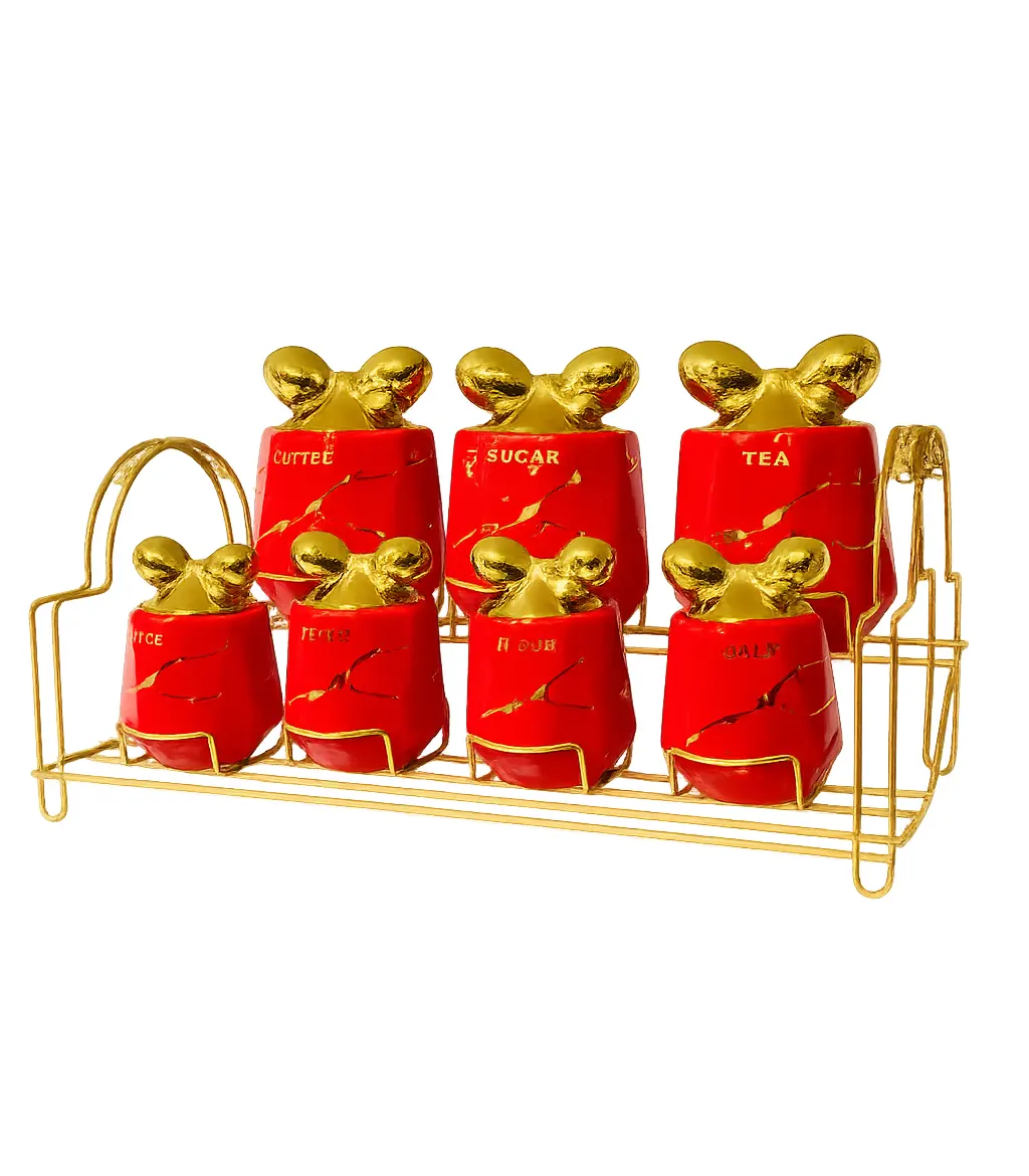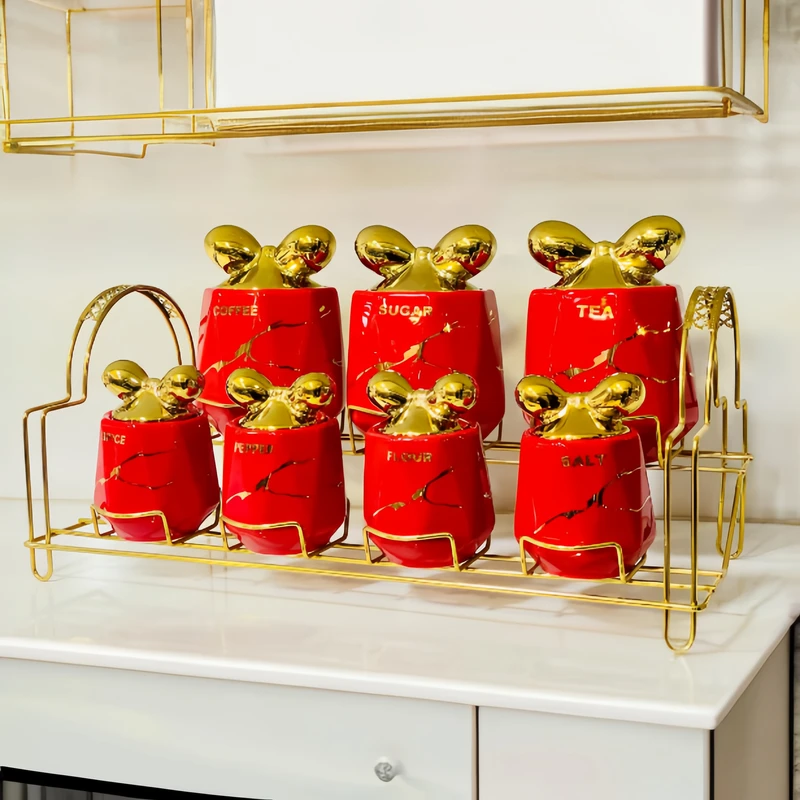پاسماوری سرامیکی 7 پارچه ماربل قرمز طرح پاپیون